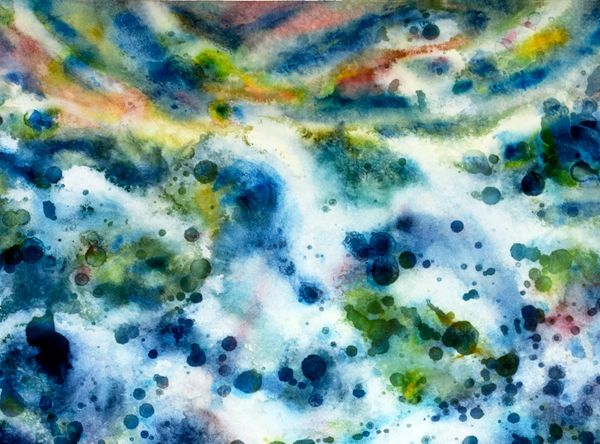 Seashells roll in and out on the surf. Objects surge and mingle, exploding upwards in joyful spurts of water, air and light.